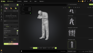 Meshy (meshy.ai): Fast processing. Results often come back quickly…but the output can sometimes be softer or less detailed. Good for simpler figures and initial tests.