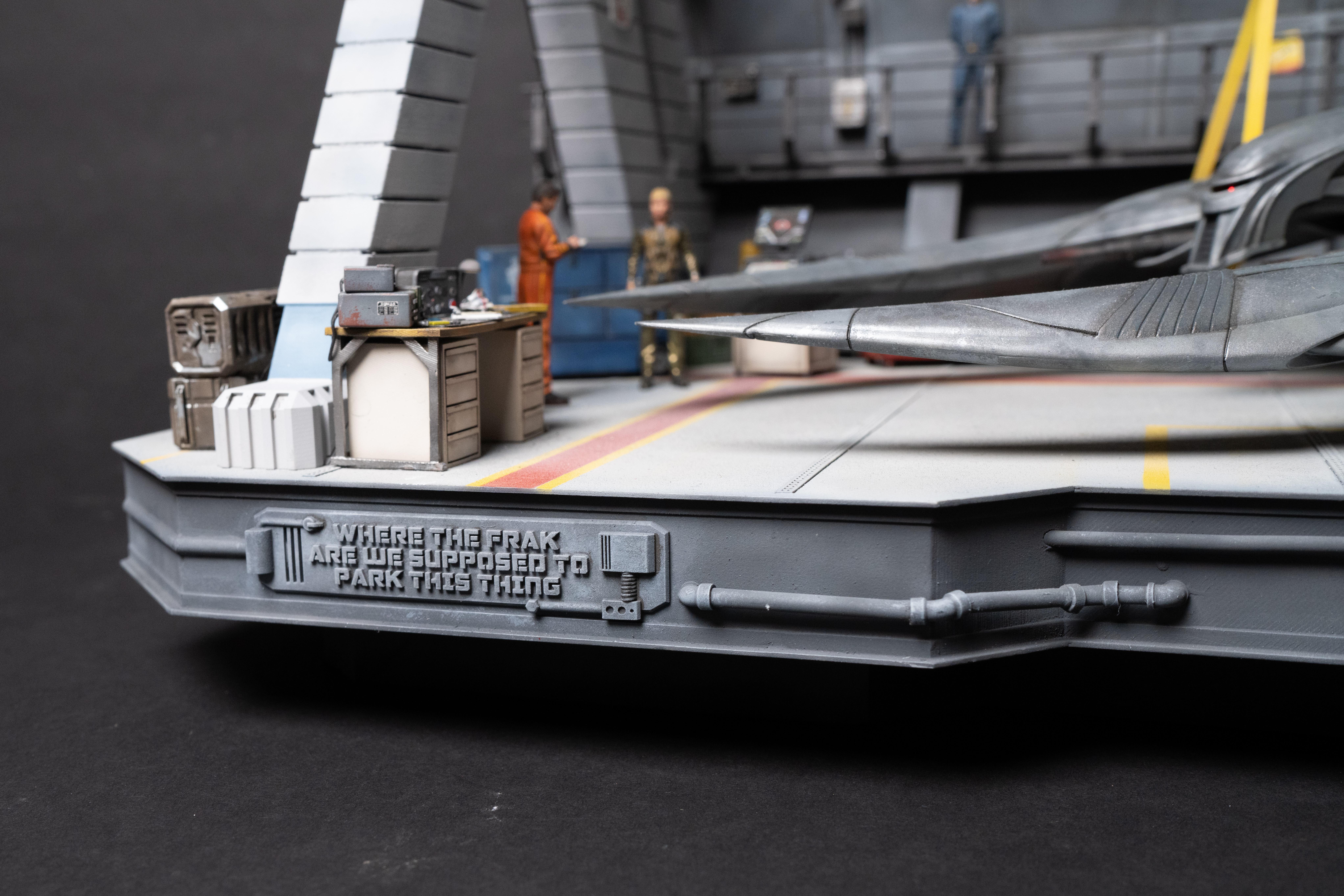 The majority of the damage was to the diorama base itself, with the ship and accessories surviving unscathed. During my initial sad venting, Matt uttered some words that will live in infamy: “You know you can just print the base on your new Bambu FDM 3D printer, right?”