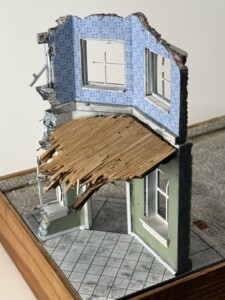 I found a great set of figures on Etsy for a Clubmobile scene, generally speaking. A group of soldiers and a crew of three Clubmobile women. It took some time trying to figure out the “story” of this diorama. I had been reading a number of accounts about the Clubmobile history and the stories the women had. Or better yet, the stories about sexual harrassment, returning home to families who said things like “you were only serving donuts, why are you saying you had a hard time”, and so much more. One of the figures from the set was a woman leaning over the counter and pointing. I had a flash of inspiration.